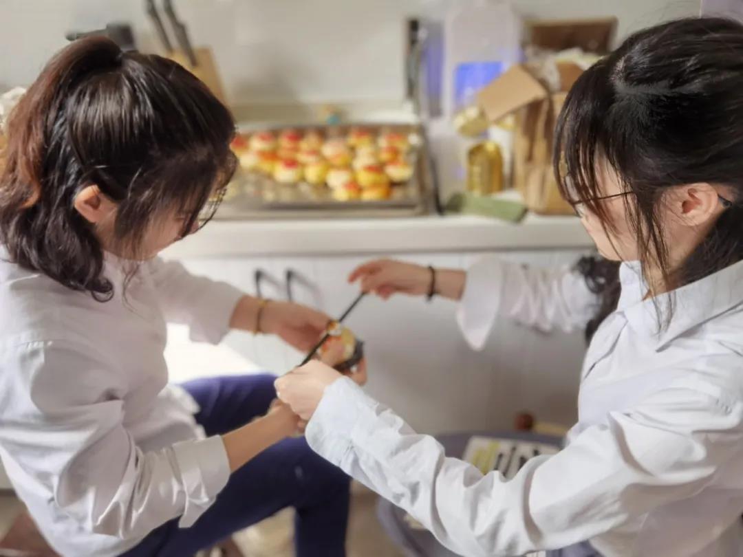 利用中午休息時(shí)間,公司總部所有員工在員工餐廳進(jìn)行了“做月餅,迎中秋”的活動(dòng)。大家分工明確,合力協(xié)作,一起圍著餐桌,在財(cái)務(wù)部孫劼老師和食堂陳阿姨的指導(dǎo)下,認(rèn)真地學(xué)習(xí)著操作過程。先把外皮原料抓取一小團(tuán)放手上,用搟面杖壓成餅狀,然后把肉餡放入其中,捏好月餅形狀,這就做成了上海本地的非常受歡迎的鮮肉月餅雛形。